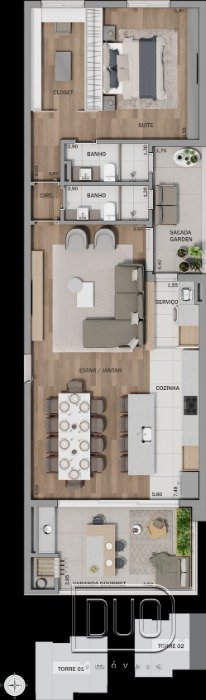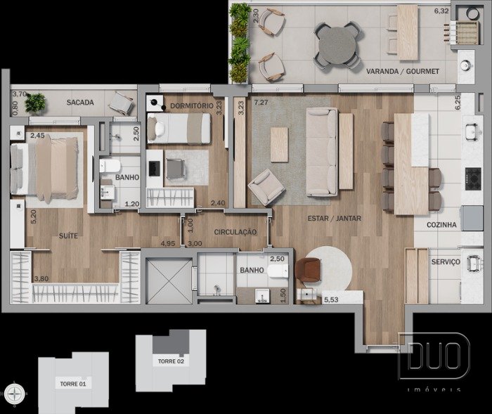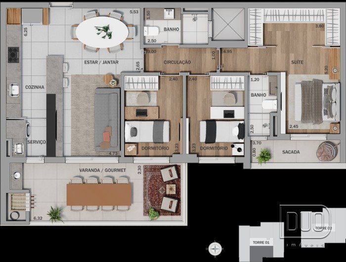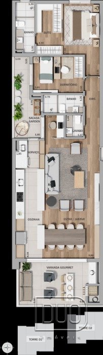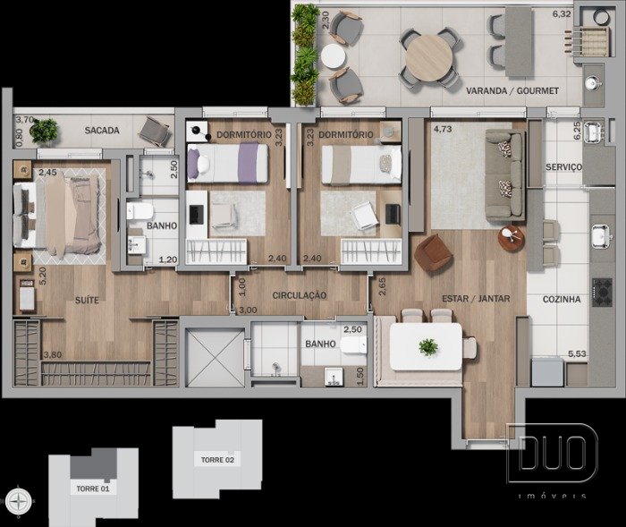 03 dormitórios sendo 01 suíte