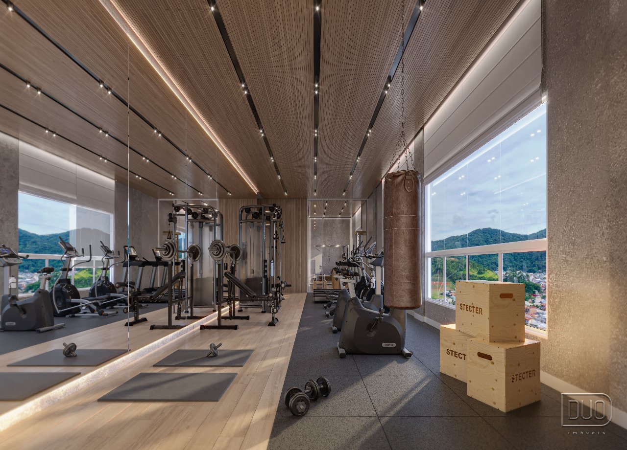 O apartamento possui living integrado com estar jantar e gourmet
