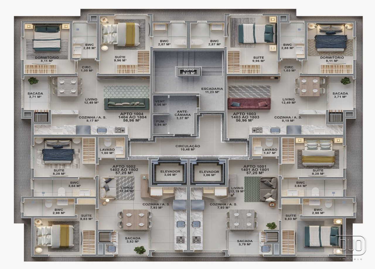 Apartamentos com diversas opções de plantas para atender as diversas necessidades de investimento ou moradia