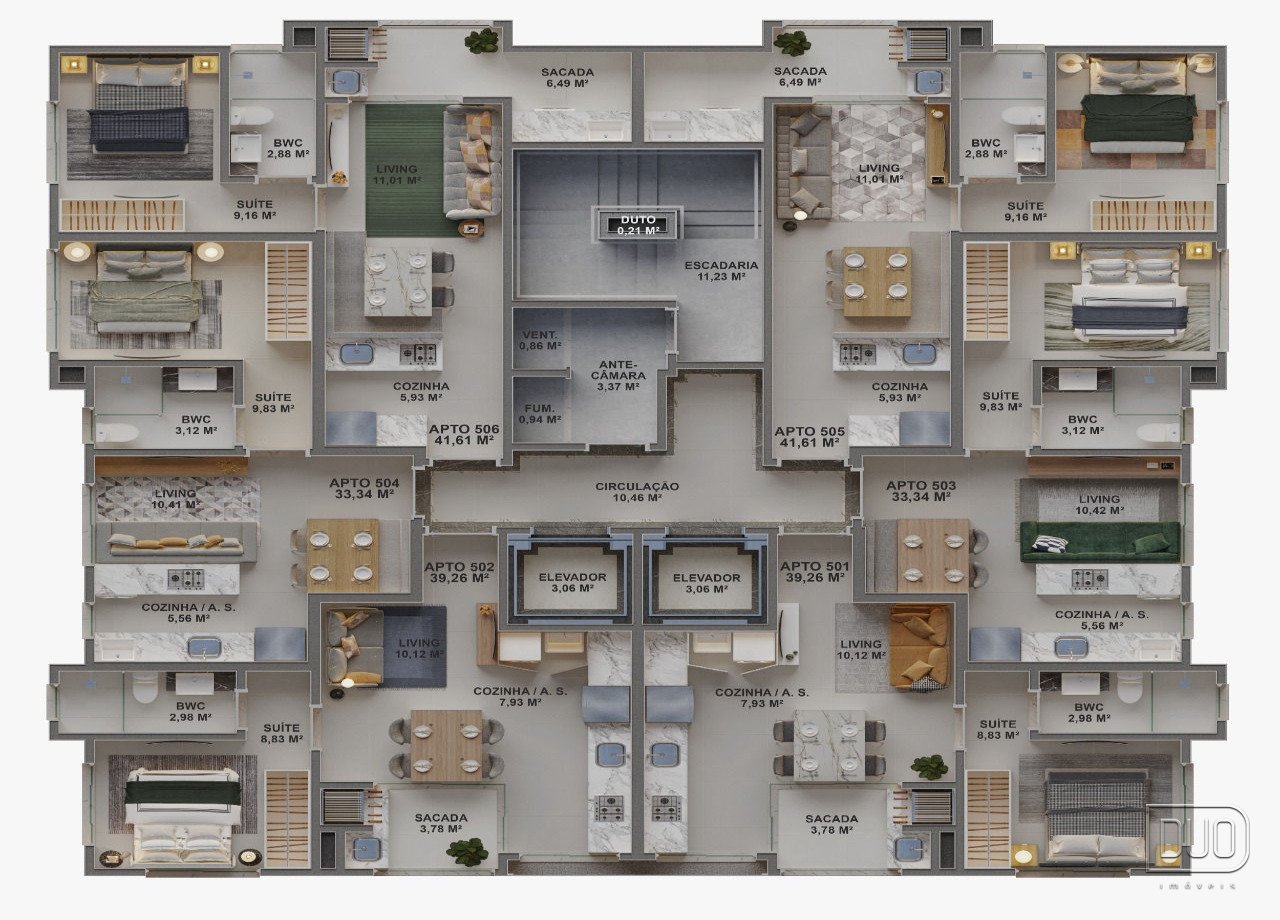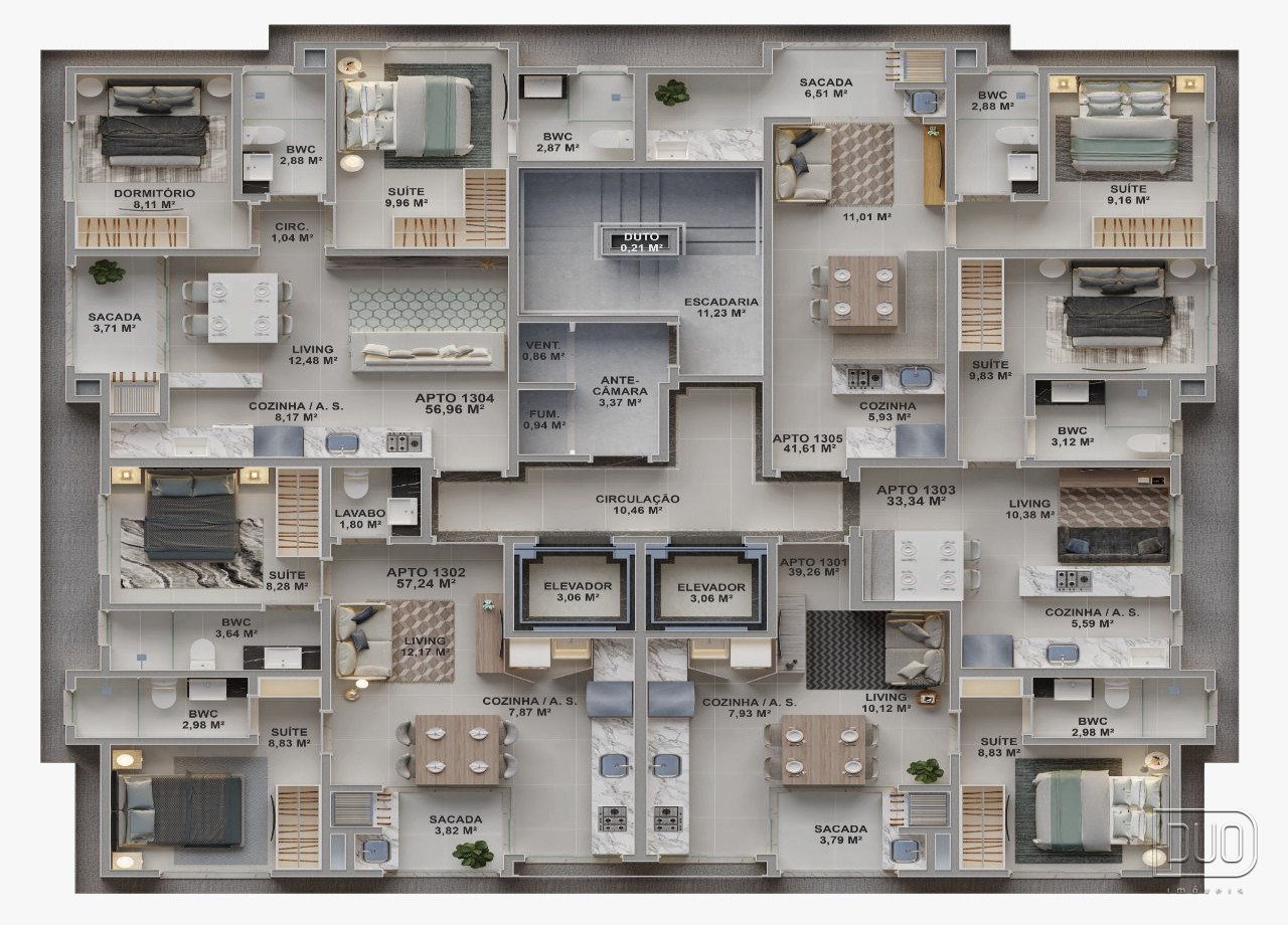 Apartamentos com diversas opções de plantas para atender as diversas necessidades de investimento ou moradia