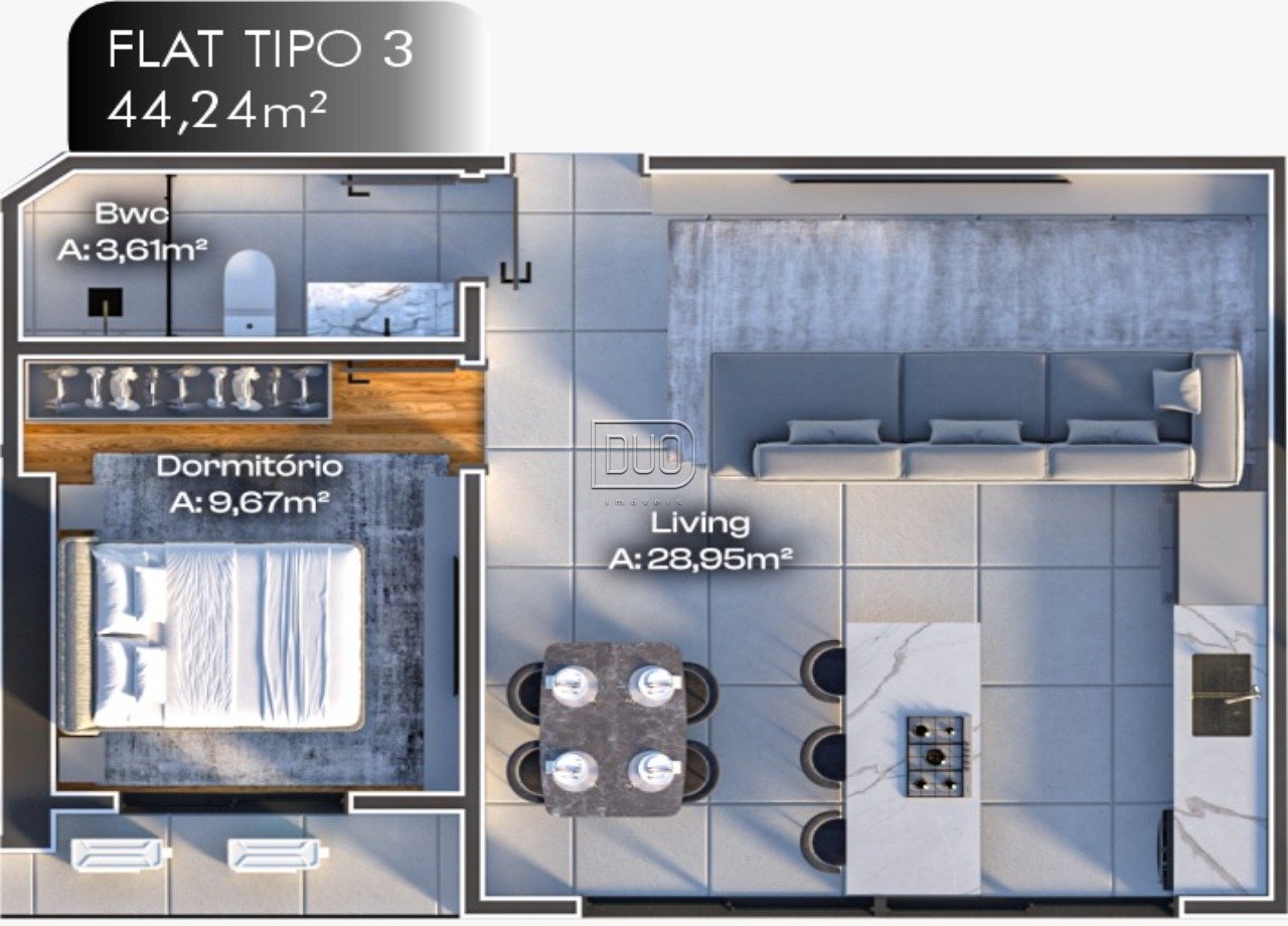 Tipo 3 - 44,24m² - 1 dormitório