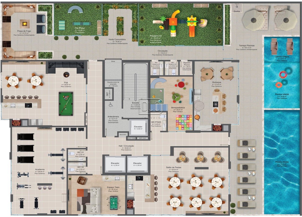 O empreendimento conta com mais de 700m² de área de lazer com
