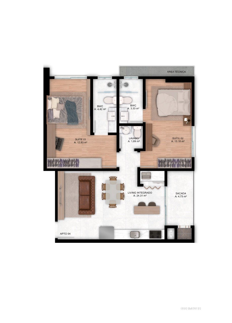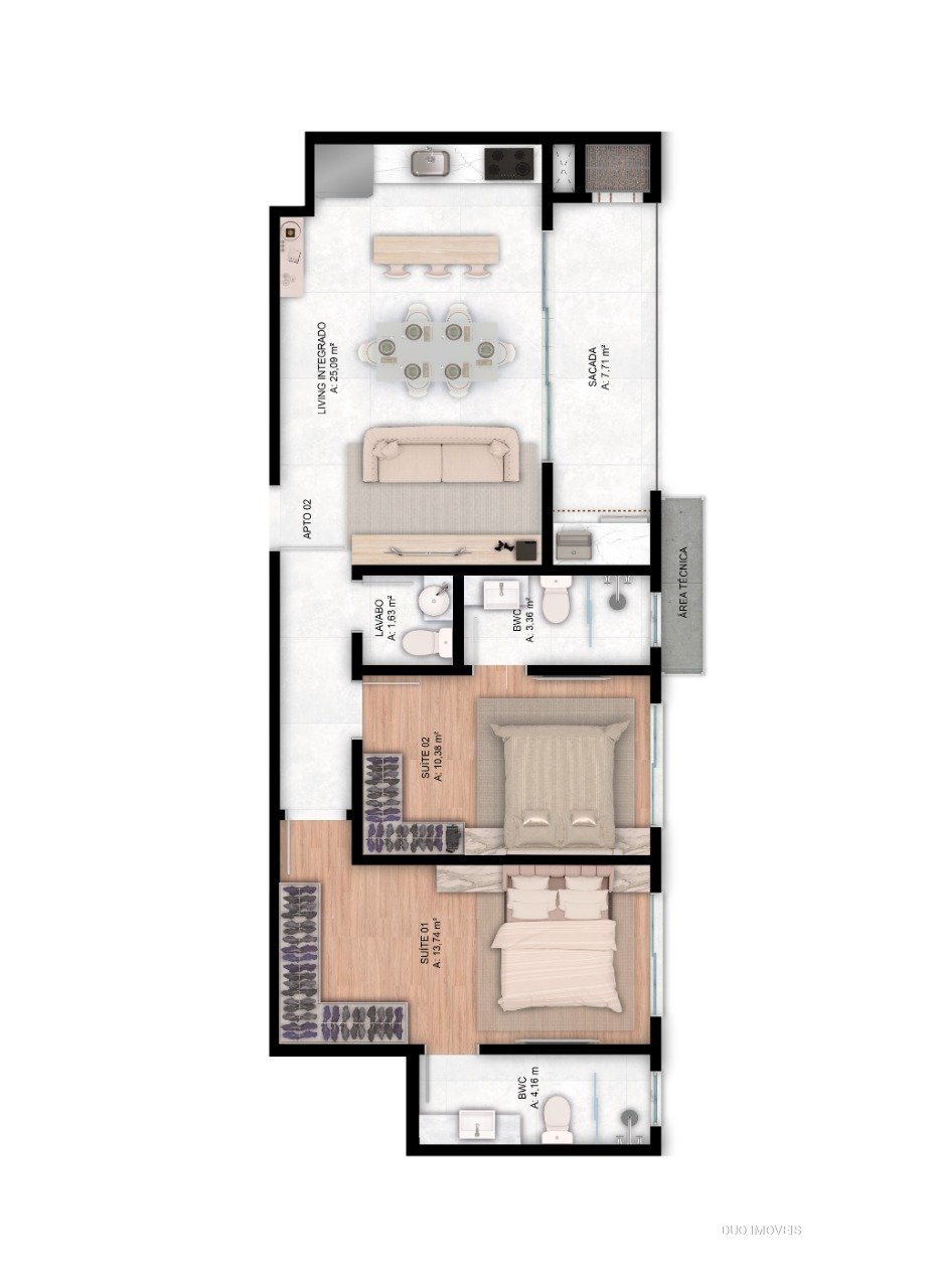 02 suítes + lavabo com 77,90 até 79,10m²