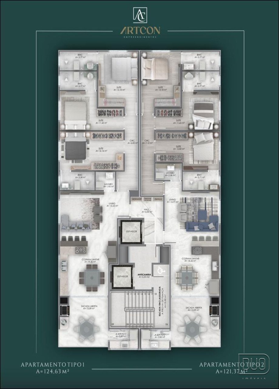 Apartamento com 3 suítes sendo uma master com closet