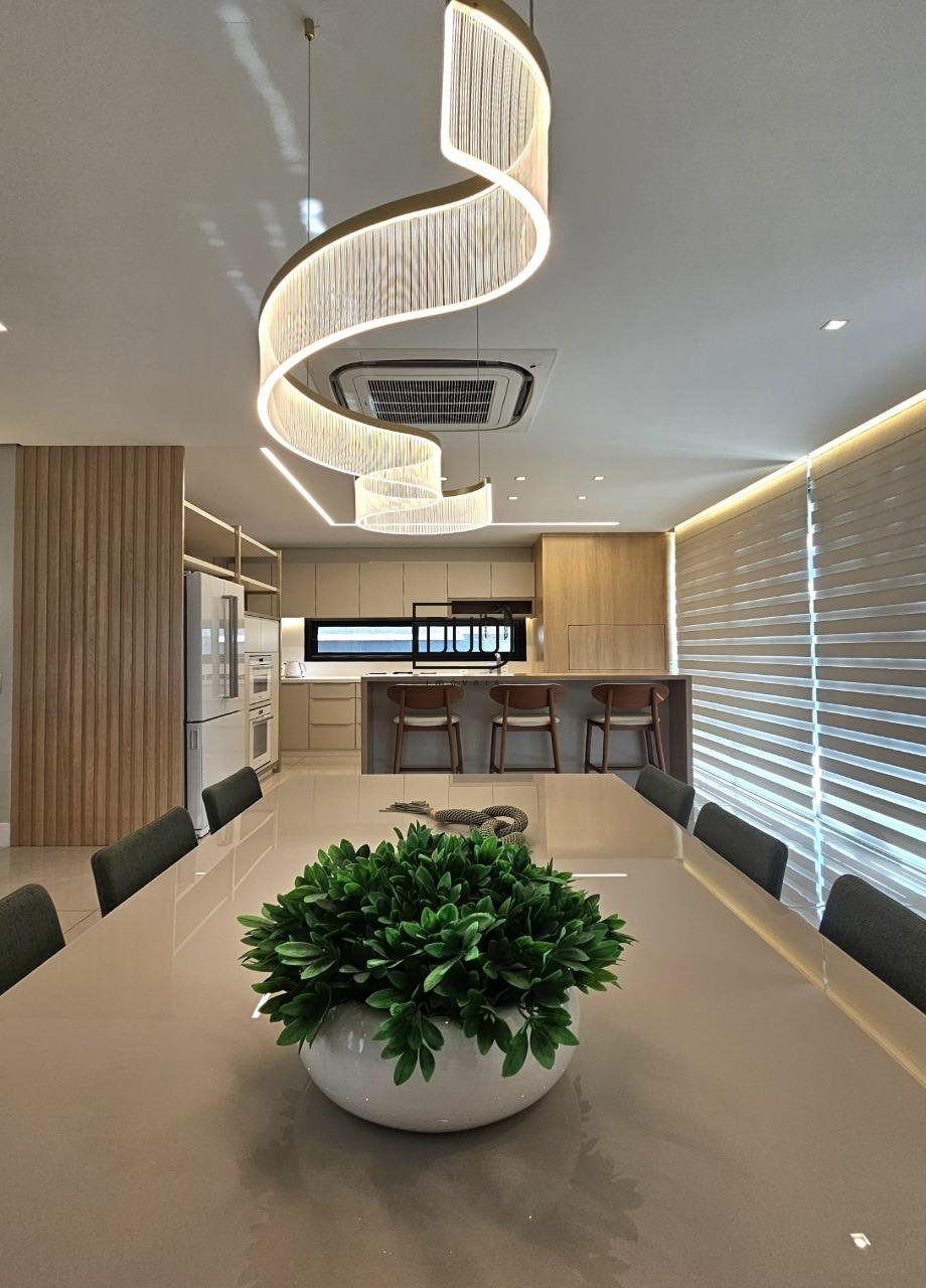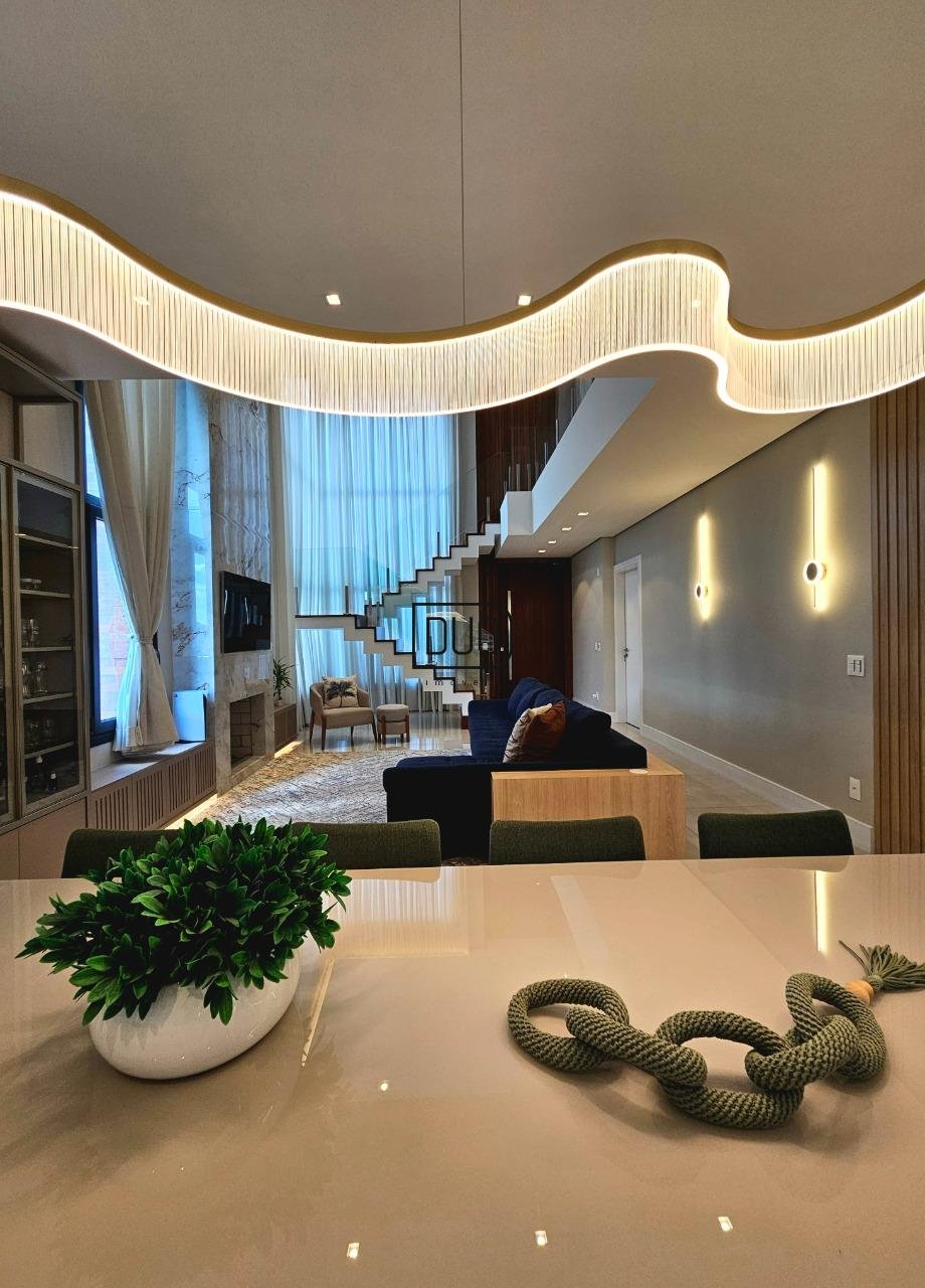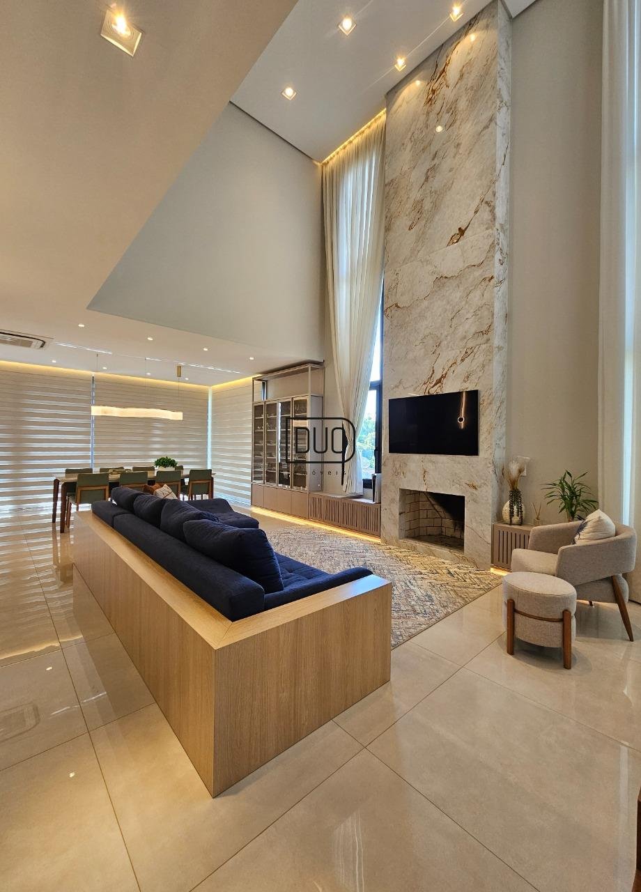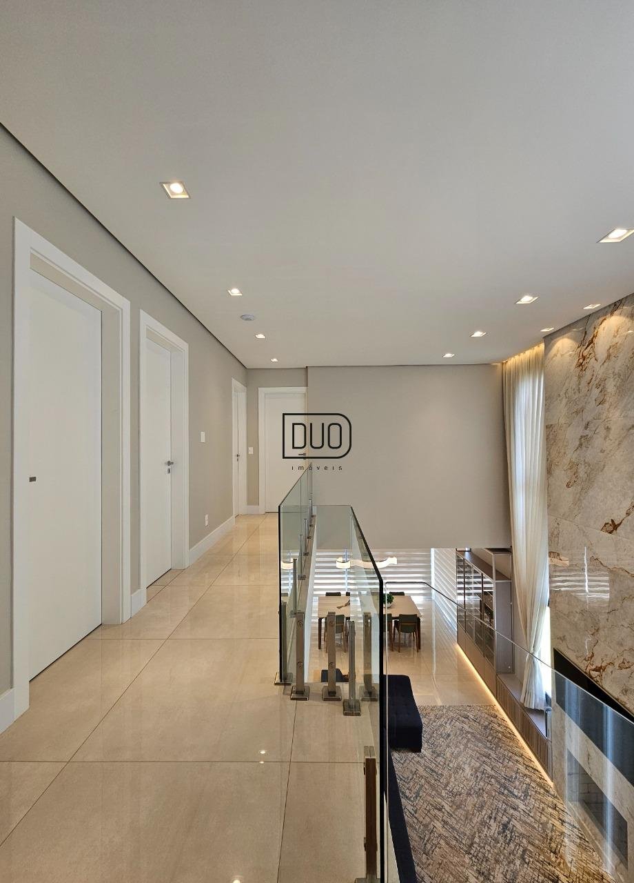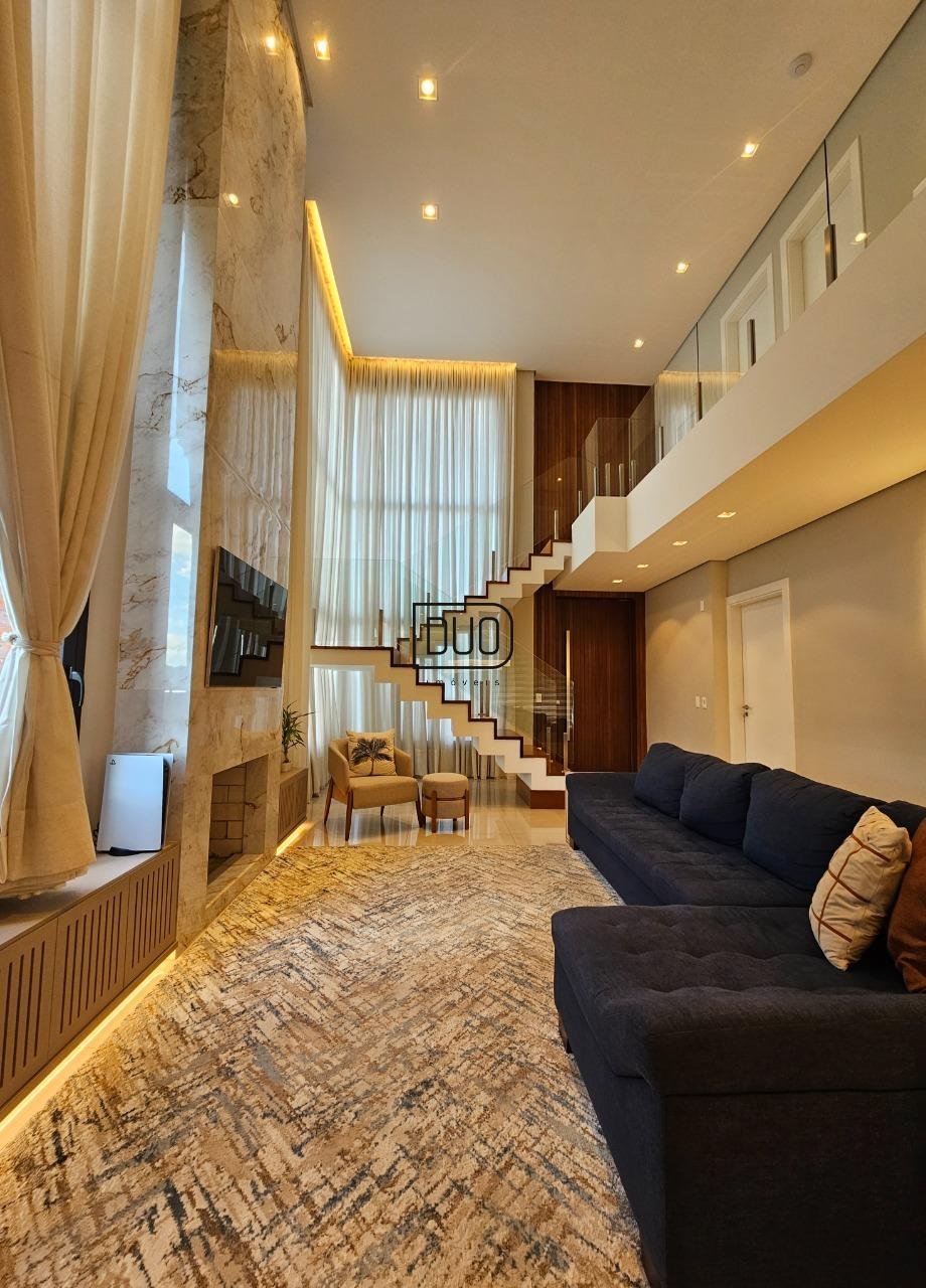 No segundo pavimento living integrado com sala de estar e jantar, e ampla cozinha com churrasqueira a carvão rotativa e um fogão extra dentro da churrasqueira. Sacada e porta-janelas amplas que te permitem ter uma vista definitiva. Lareira à lenha, piso porcelanato, ar condicionado de teto K7, pé direito duplo, escada em madeira e guarda corpo em vidro, lavabo, área de serviço separada e a garagem.