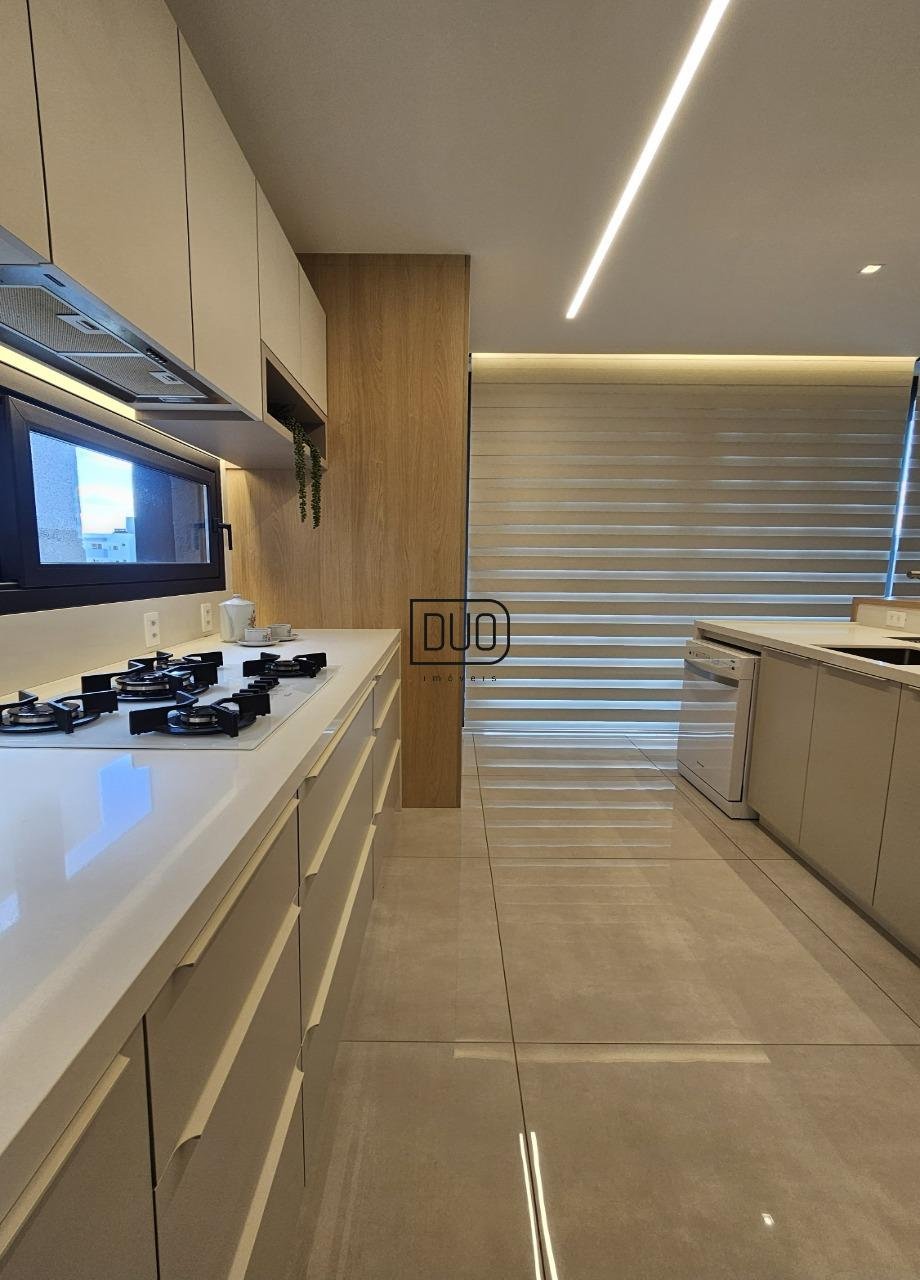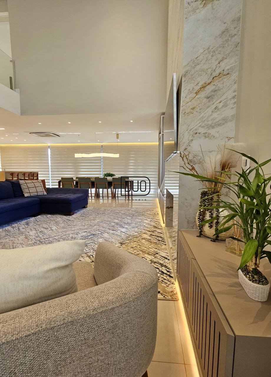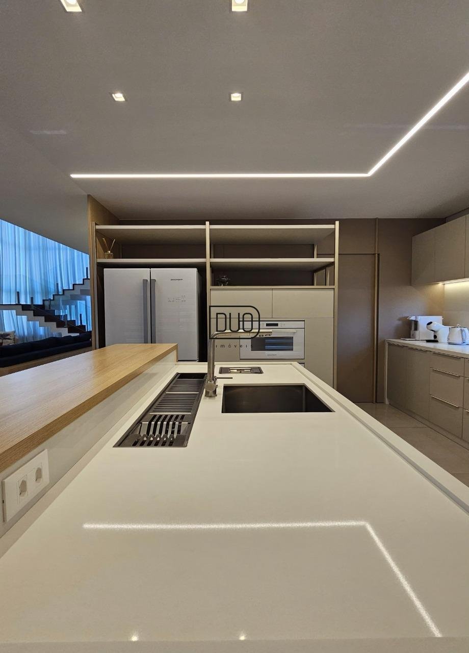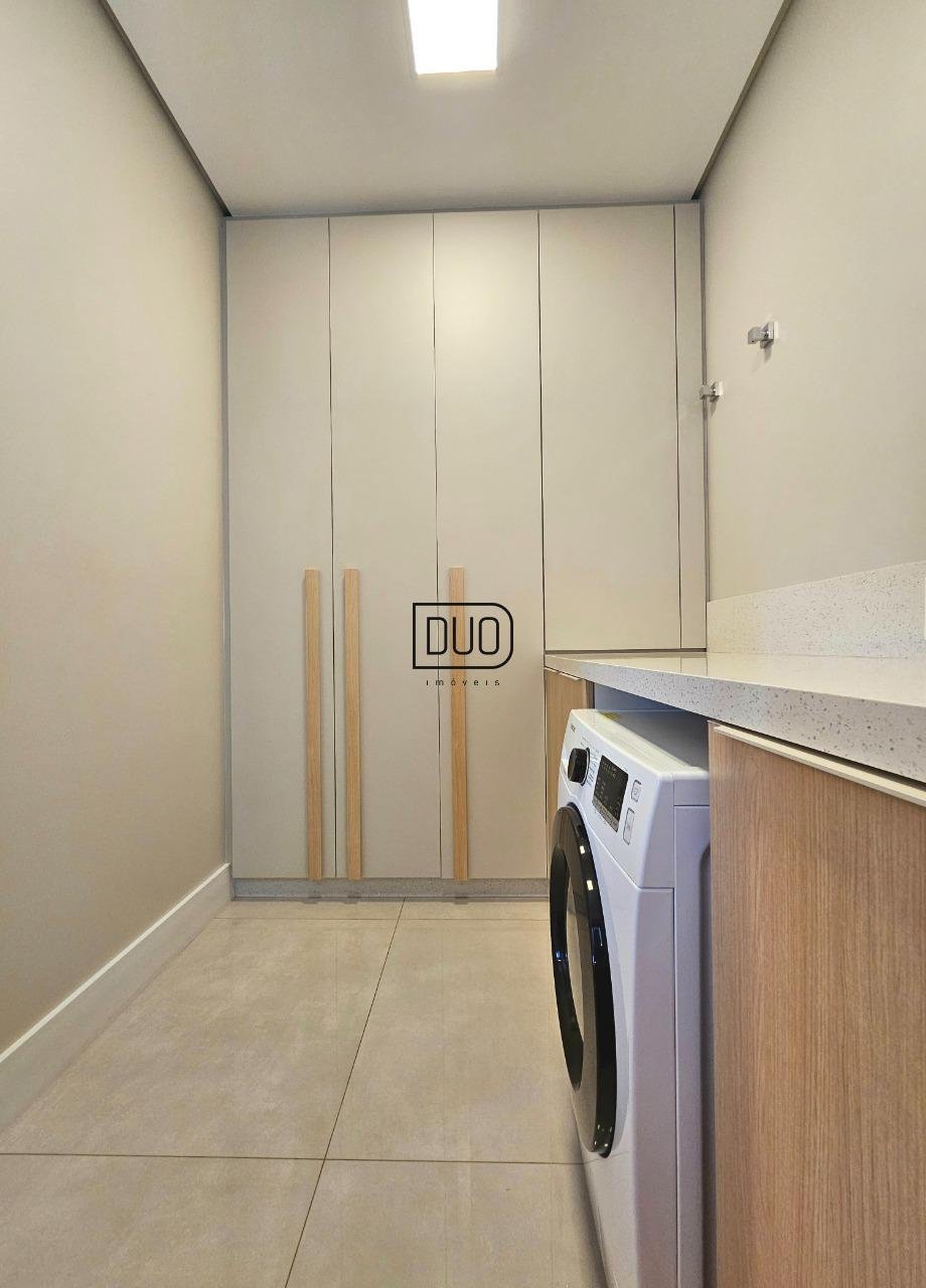 No primeiro pavimento um salão de festas com churrasqueira rotativa à carvão com espetos e grelha, forno à lenha e fogão campeiro, cozinha toda montada e equipada, lavabo, atelier e depósito amplo. Nesse pavimento você já tem acesso ao pátio e piscina. Acabamentos em porcelanato, espera para split.