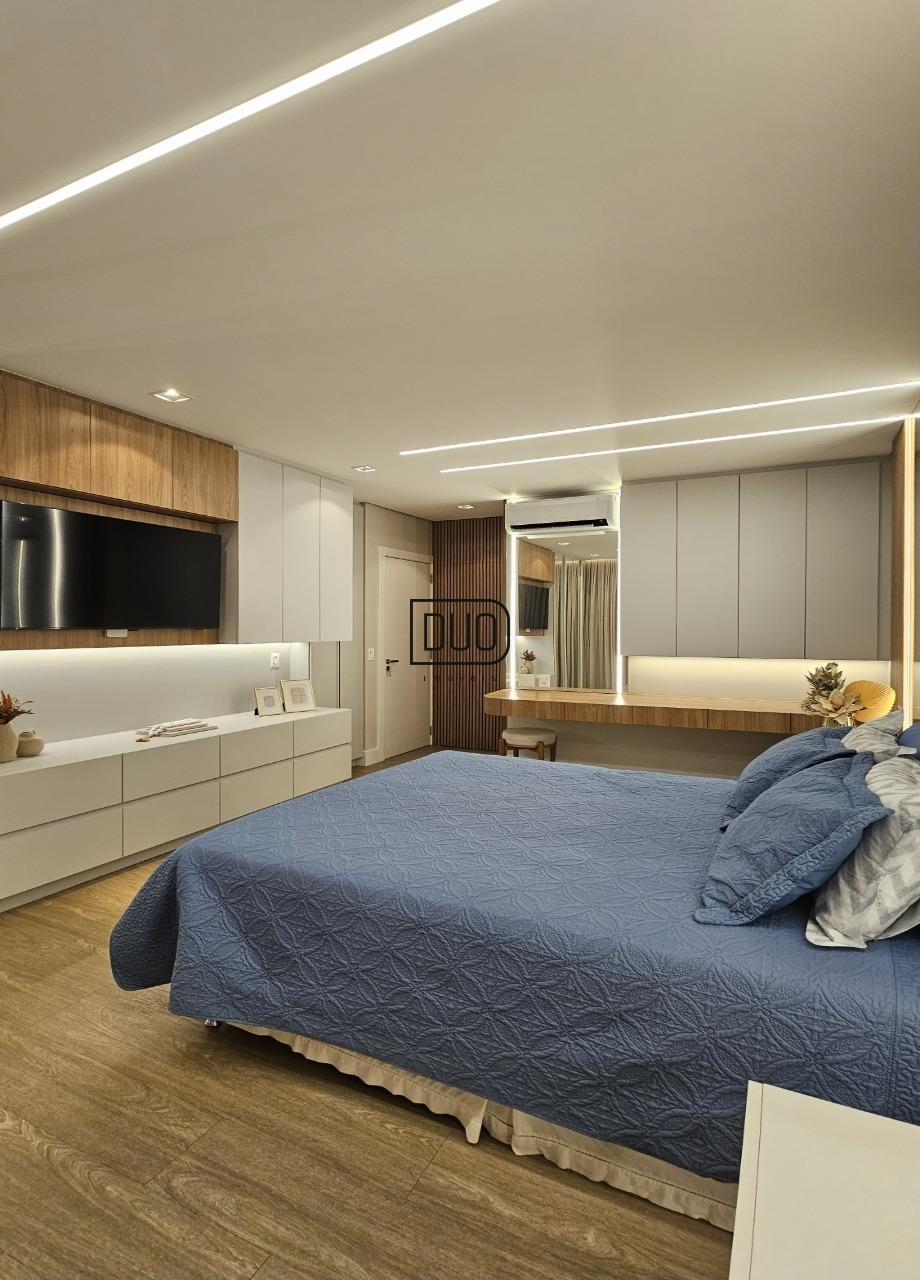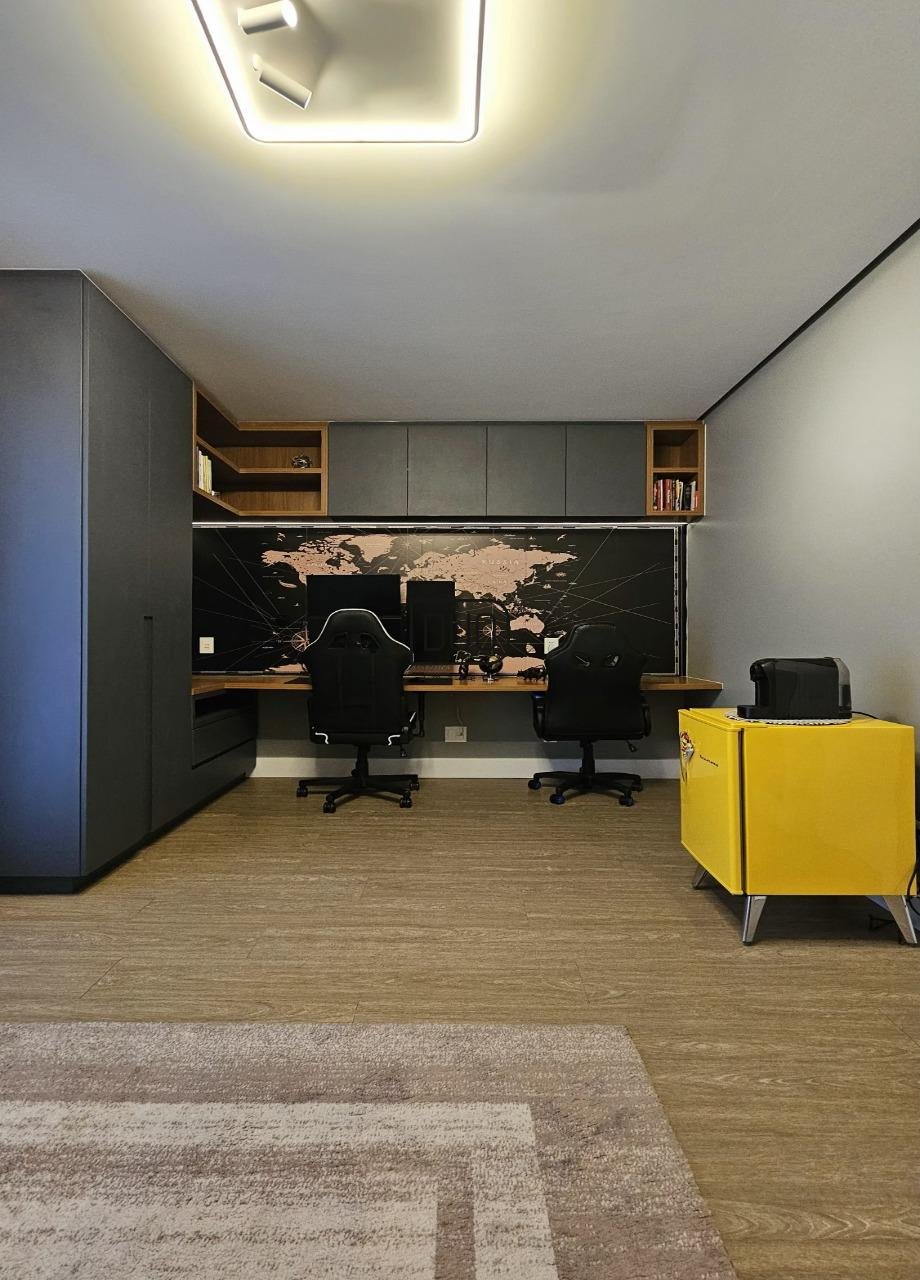 No terceiro pavimento são 3 suítes, todas com sacada, split já instalados, piso vinílico e porcelanato nos banheiros.