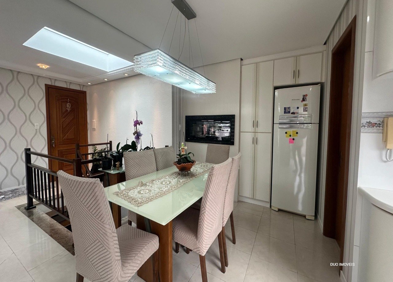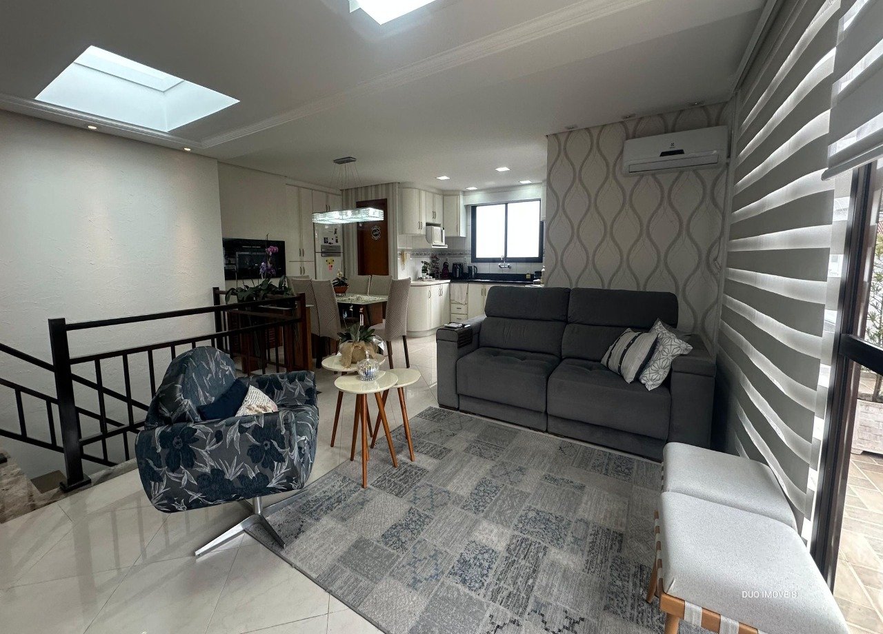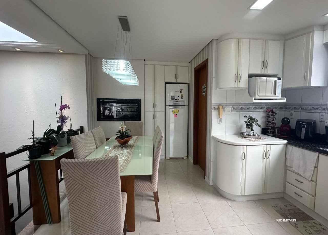 No andar superior cozinha com churrasqueira, sala de estar, lavabo e uma área garden. No pavimento inferior os dormitórios e sala de estar. Elevador acessa os dois andares.
