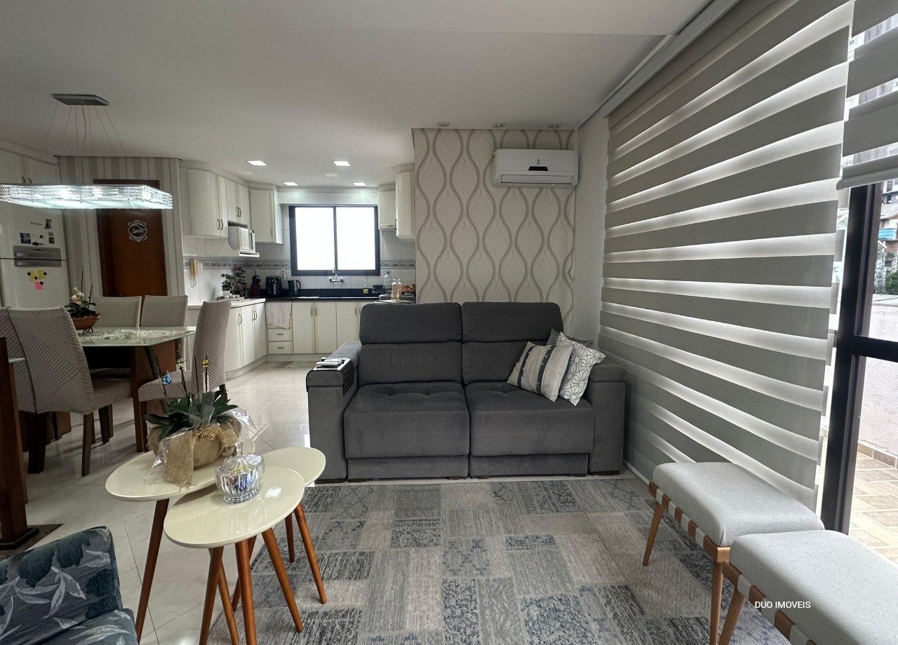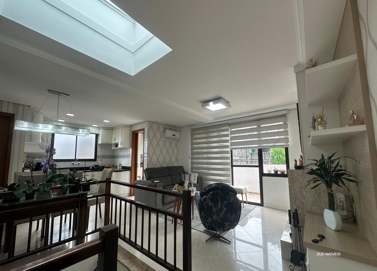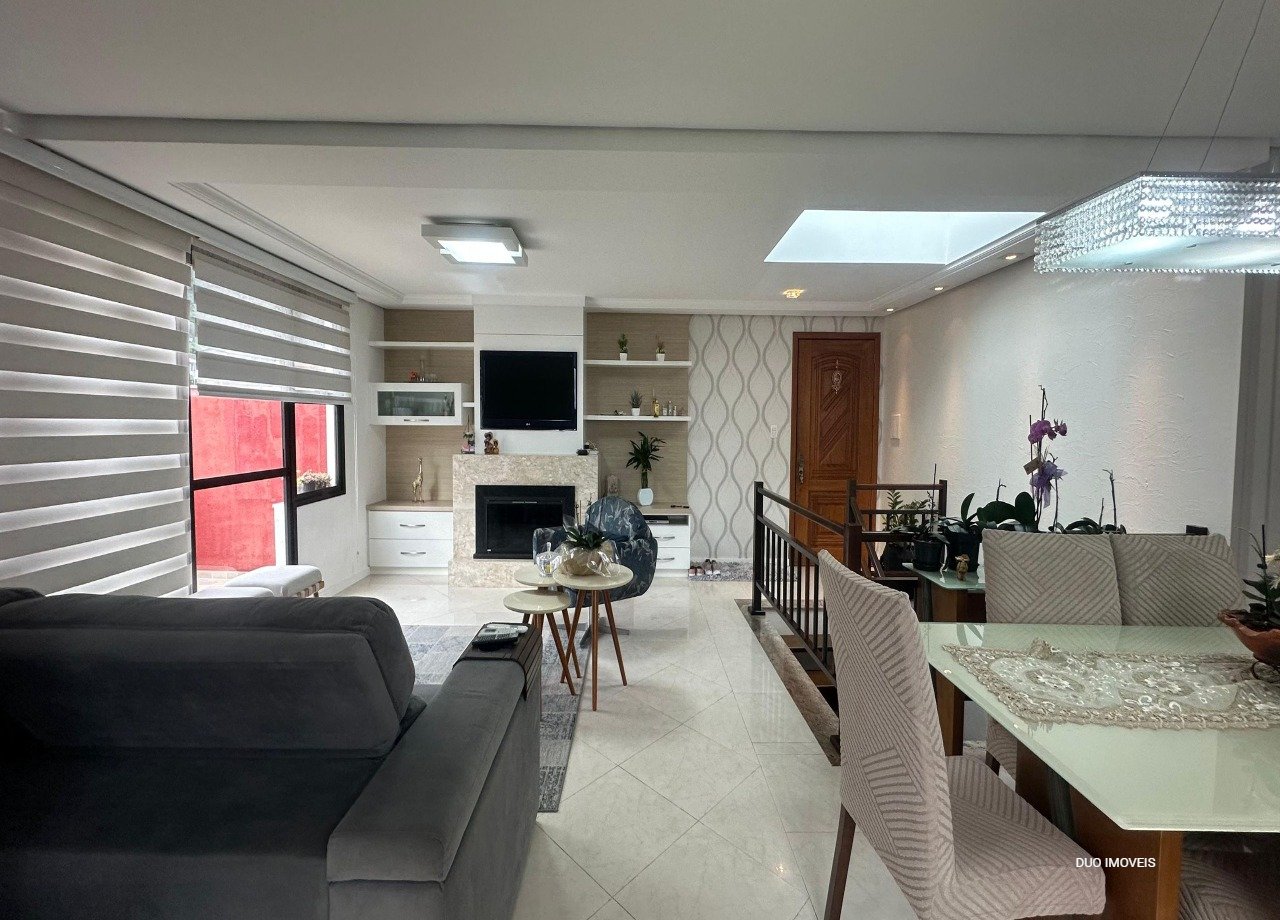 No andar superior cozinha com churrasqueira, sala de estar, lavabo e uma área garden. No pavimento inferior os dormitórios e sala de estar. Elevador acessa os dois andares.