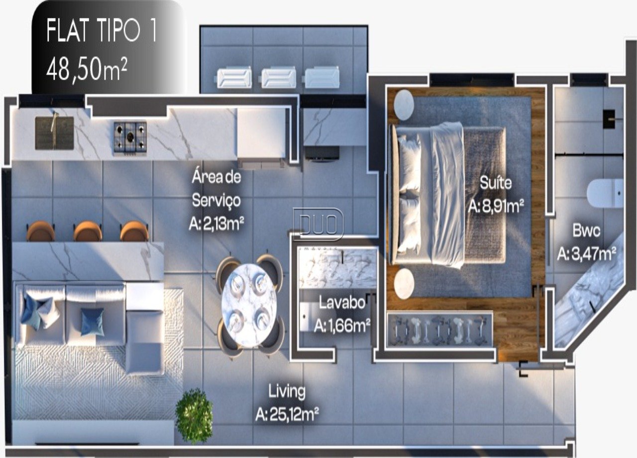 Tipo 1 - 48,50m² - 1 suíte